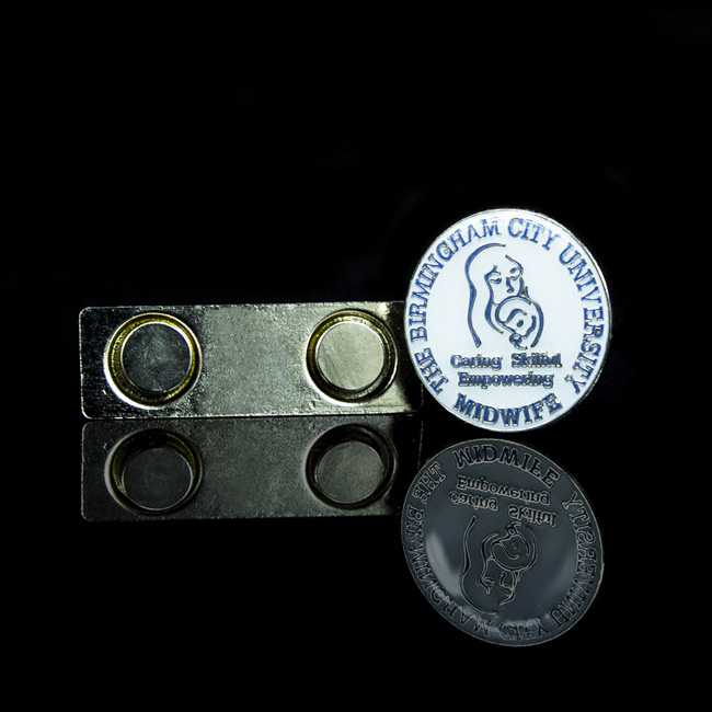 Metal magnetic badges are ideal for the healthcare industry and education sector. Magnetic fixing avoids holes in clothing and is a safer option then the standard pin fitting.